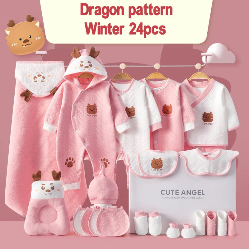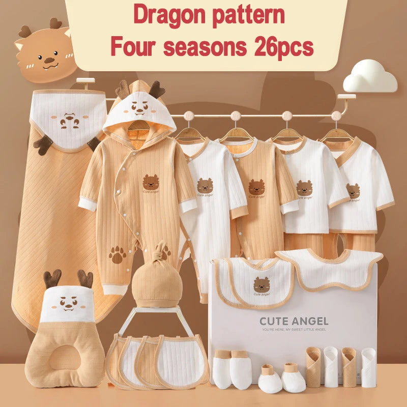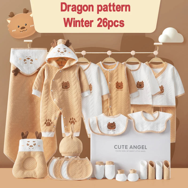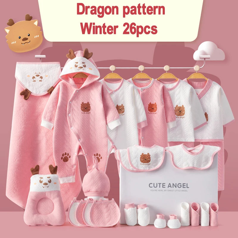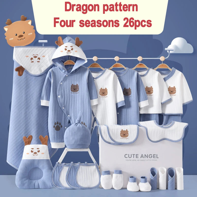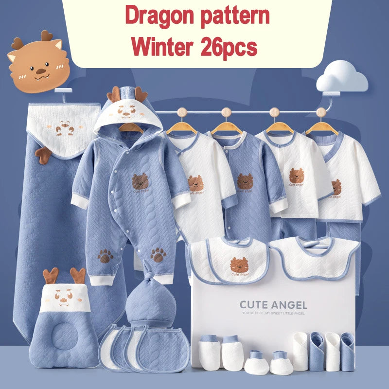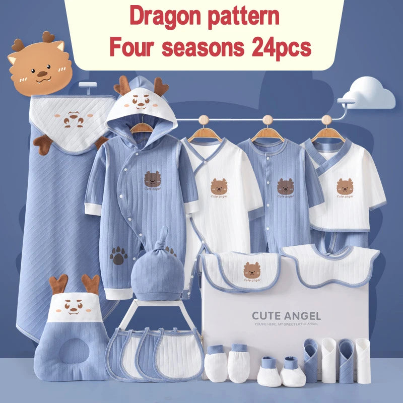 1).Descriptions: 22/24/26 Pieces/0-3Months Newborn Baby Clothing 100% Cotton Kids Clothes Suit Unisex Infant Boys Girls Clothing Set